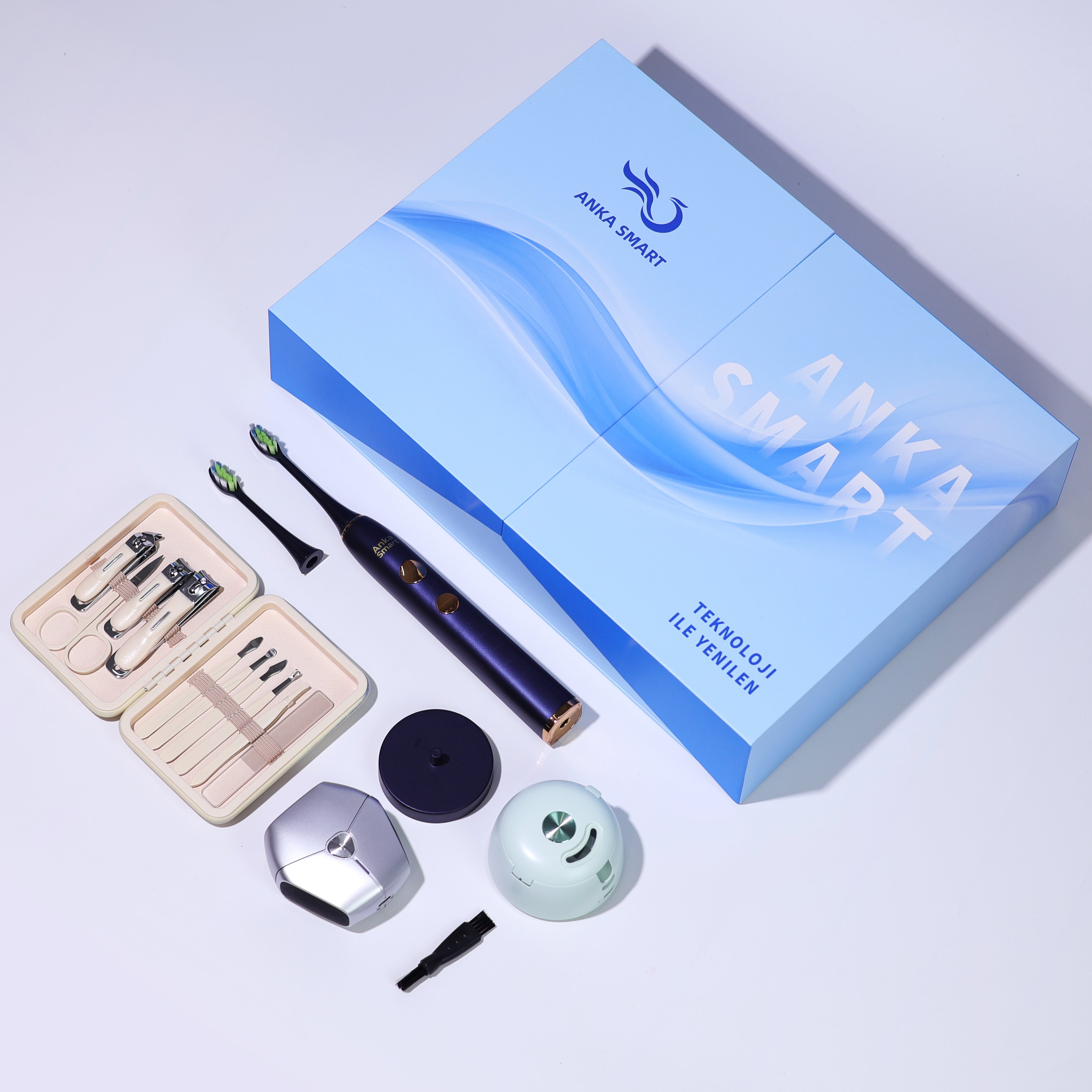 This care gift set offers a complete oral and personal care experience, including a high-quality smart sonic electric toothbrush, a convenient UV toothbrush sanitizer, a refined nail clipper set, and a mini electric shaver or electric scalp massager (suitable for both men and women). Whether for daily use or travel, it's the perfect choice to help you feel refreshed and healthy every day.